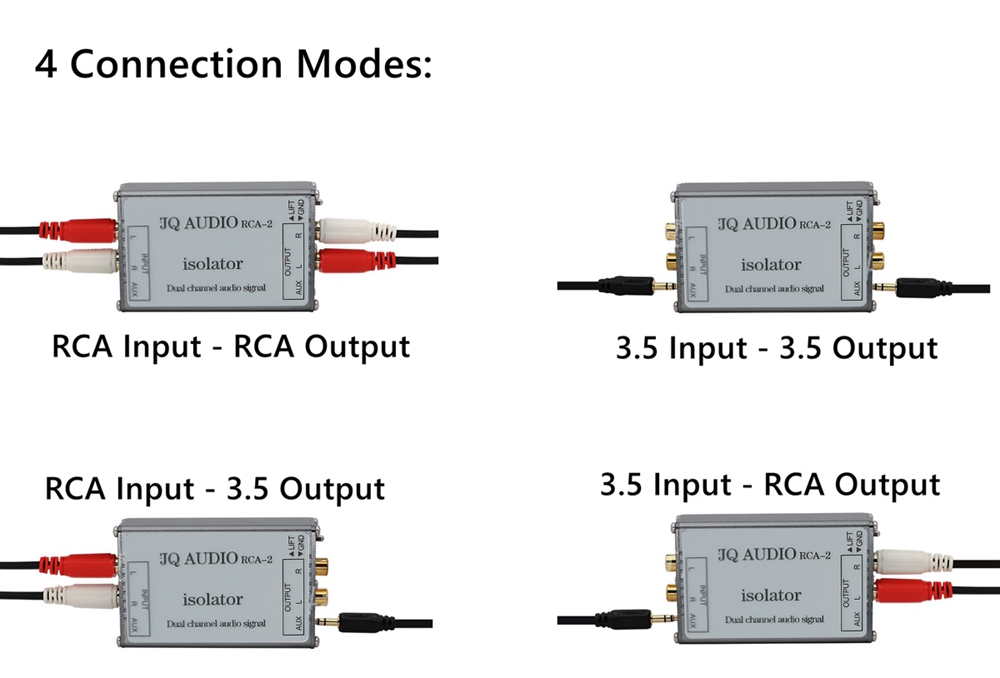 - The RCA-2 audio signal isolator adopts the permalloy audio coupling components customized by the imported audio transformer manufacturer, dual RCA and 3.5 stereo input and output, with common ground and non-common ground switch. It can isolate the potential difference between the two systems, avoid the AC acoustic interference caused by the grounding problem, prevent the high potential difference from damaging the equipment input components,  and realize the safe transmission of audio signal. Connecting the audio isolator can improve the sound.
