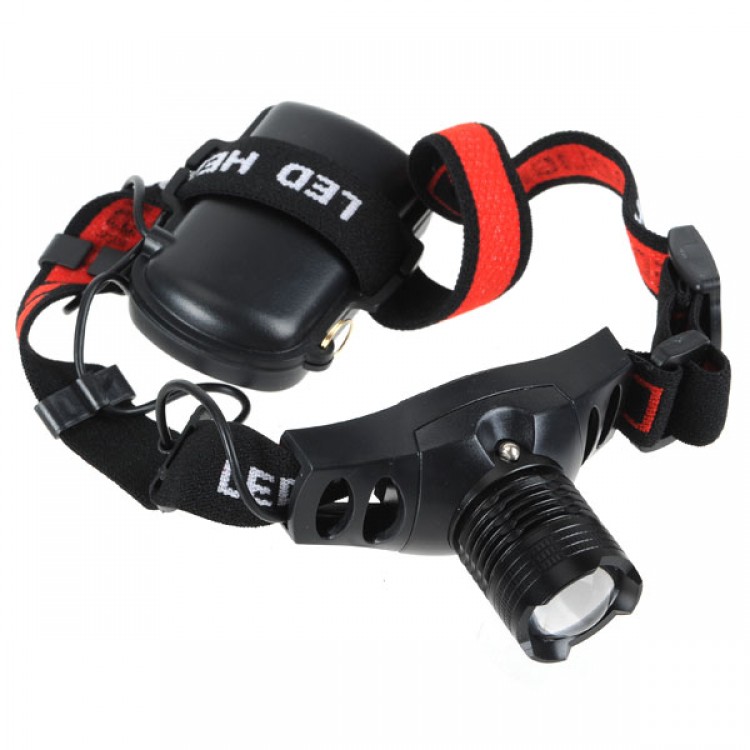 Retractable 1-LED White Light Zoom Headlight Head Lamp- Black