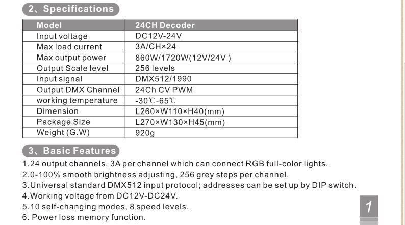 - 24 output channels, 3A per channel which can connect RGB full-color lights.