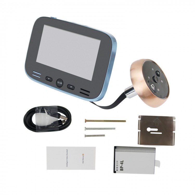 Ring Video Doorbell 2MP 145° Peephole Viewer Camera 4.3Inch Screen IR Night Version M100- blue
