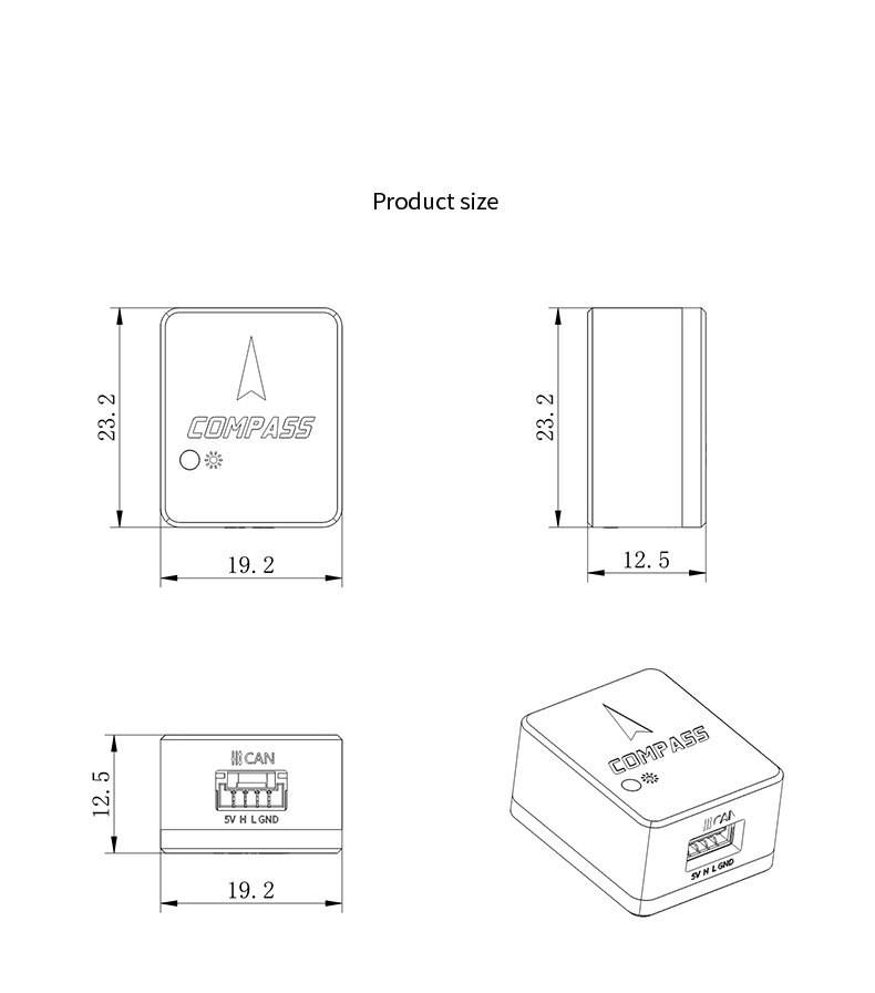 - Net weight: 8.3g for CAN compass; 8.1g for I2C compass