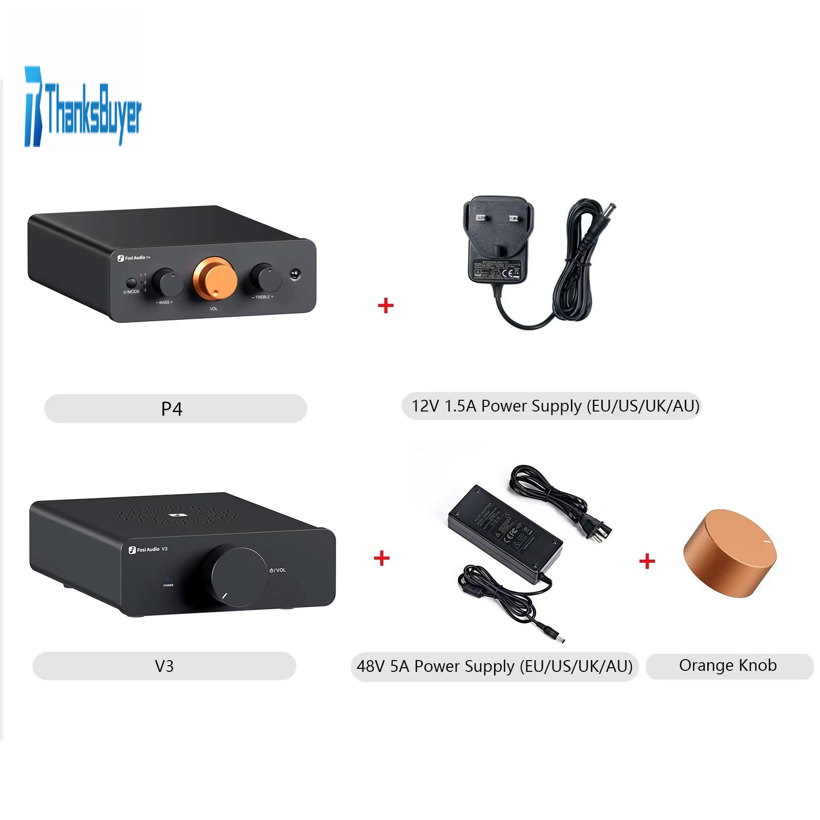 Fosi Audio P4 Mini Preamplifier + Fosi Audio V3 300Wx2 Mini Power Amplifier + 32V Power Adapter