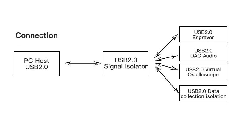 ISO USB2.0 HI 480Mpbs USB Signal Isolator DAC Audio Purification Logic Analysis Virtual Oscilloscope