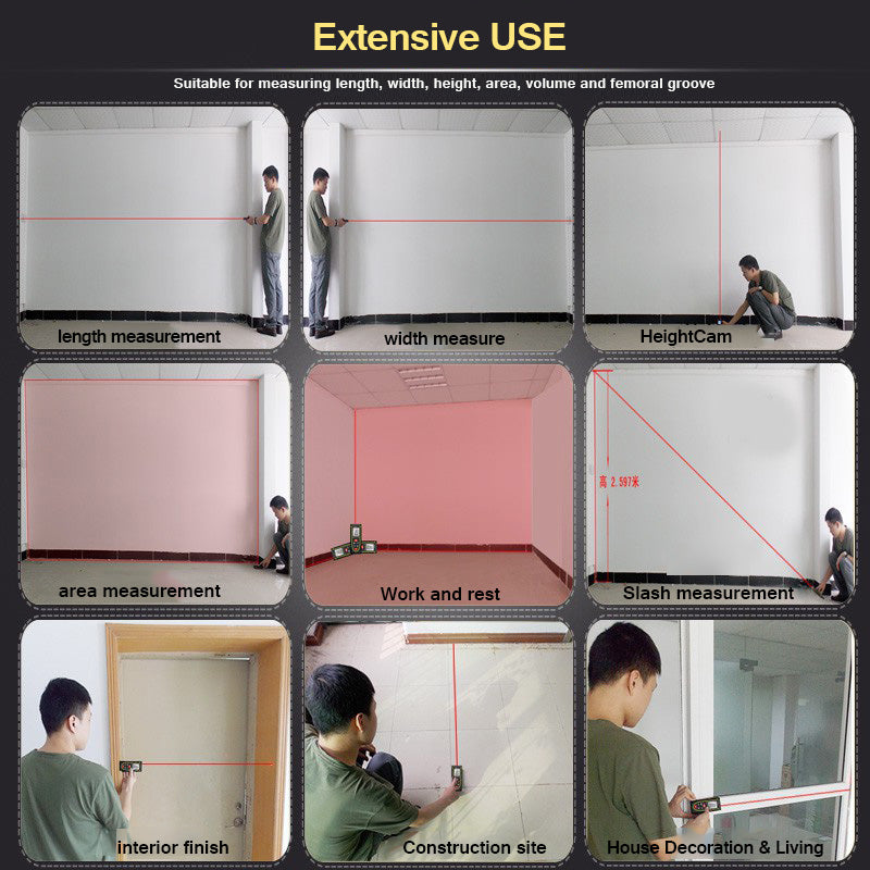 - Multi-Purpose: It supports area, volume, indirect Pythagorean measurement, angle, height and wall surface measurement.