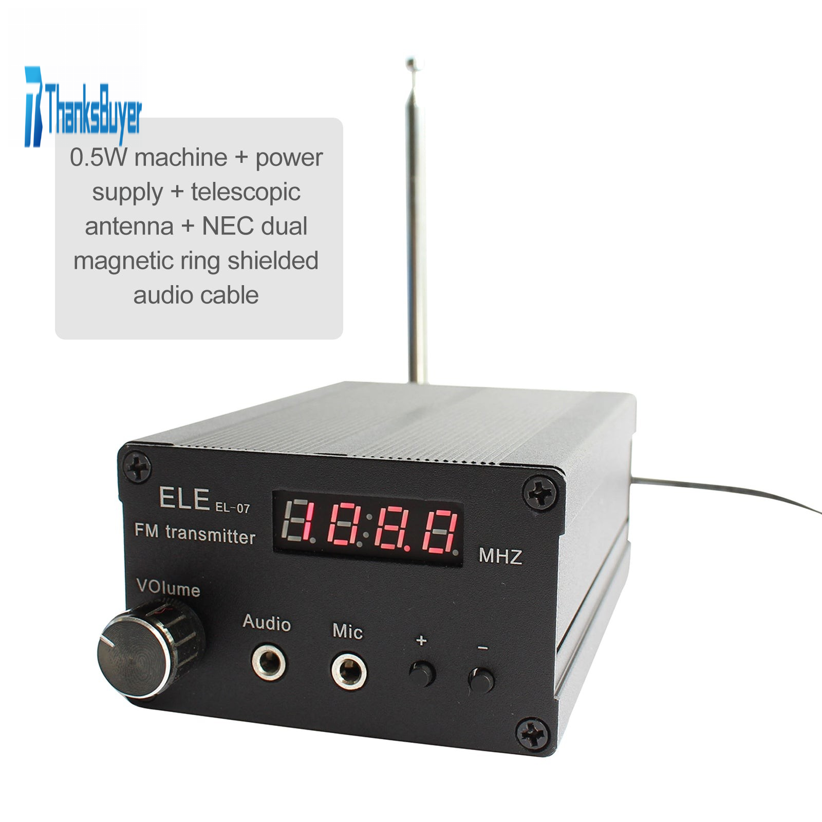 0.5W Stereo FM Transmitter Wireless Broadcast Transmitter Power Adjustable w/ Antenna Audio Cable