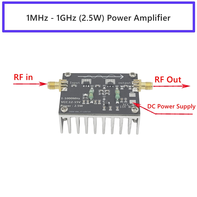 1-1000MHz 2.5W RF Power Amplifier HF VHF UHF FM Frequency Modulation Power Amplifier Module for Wireless Transmission