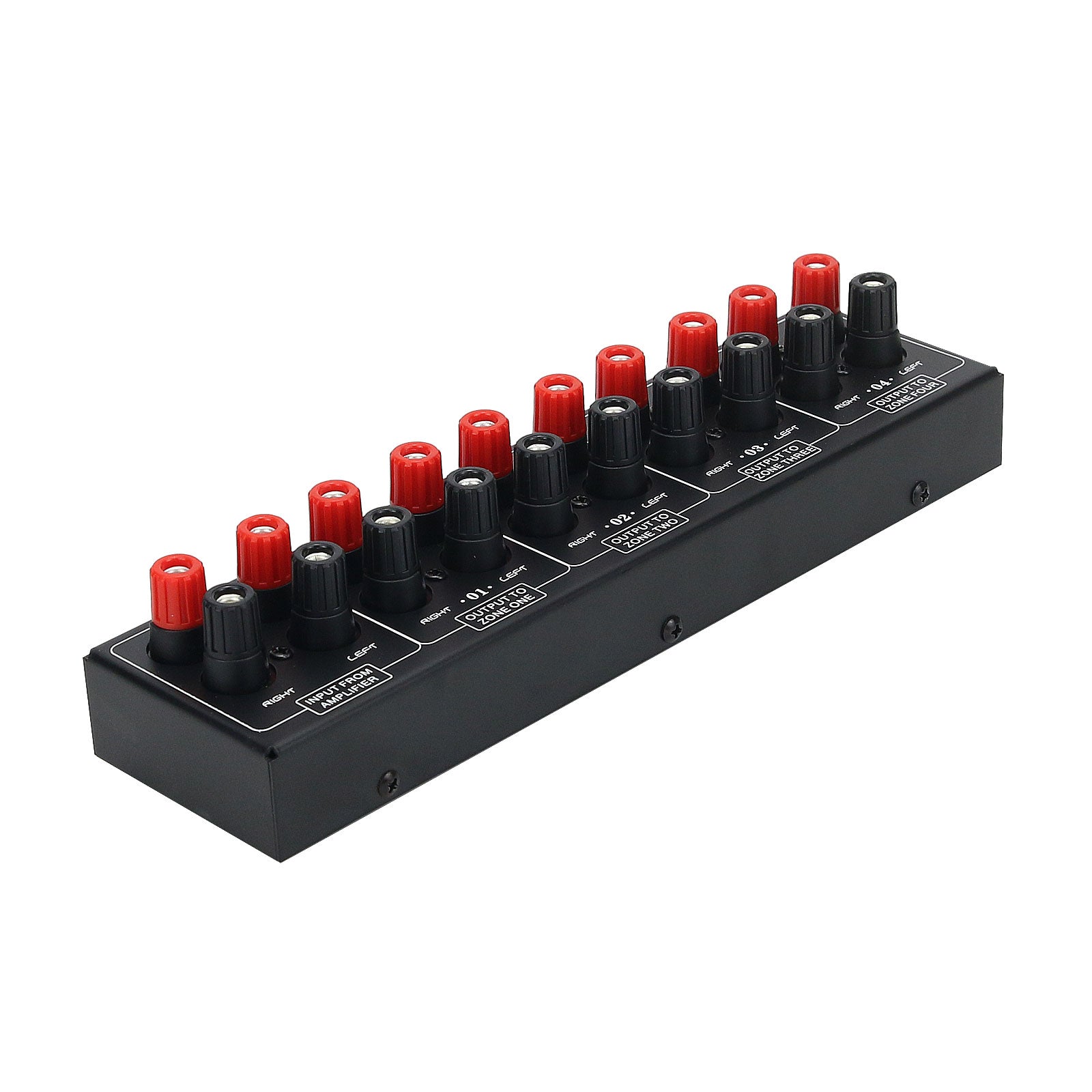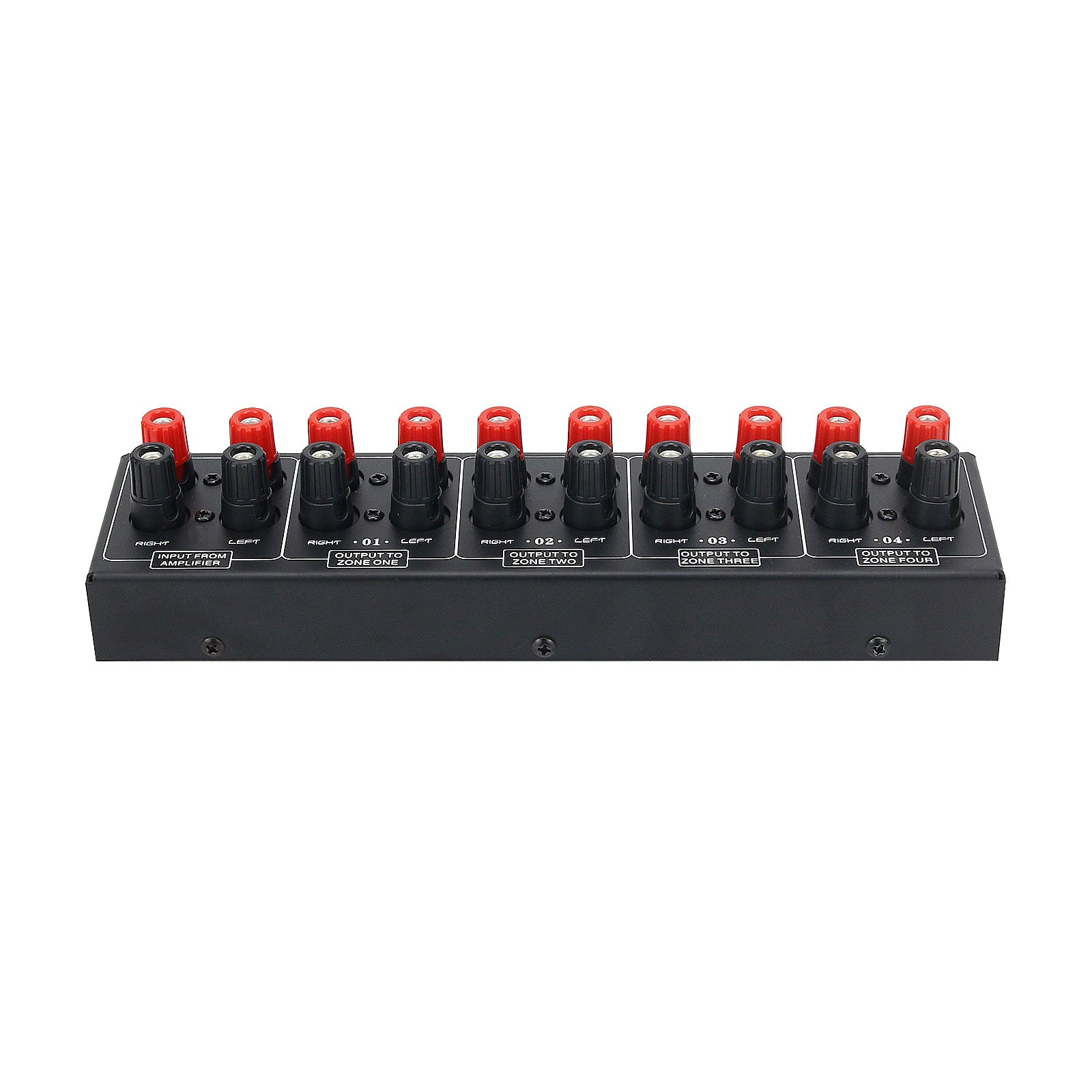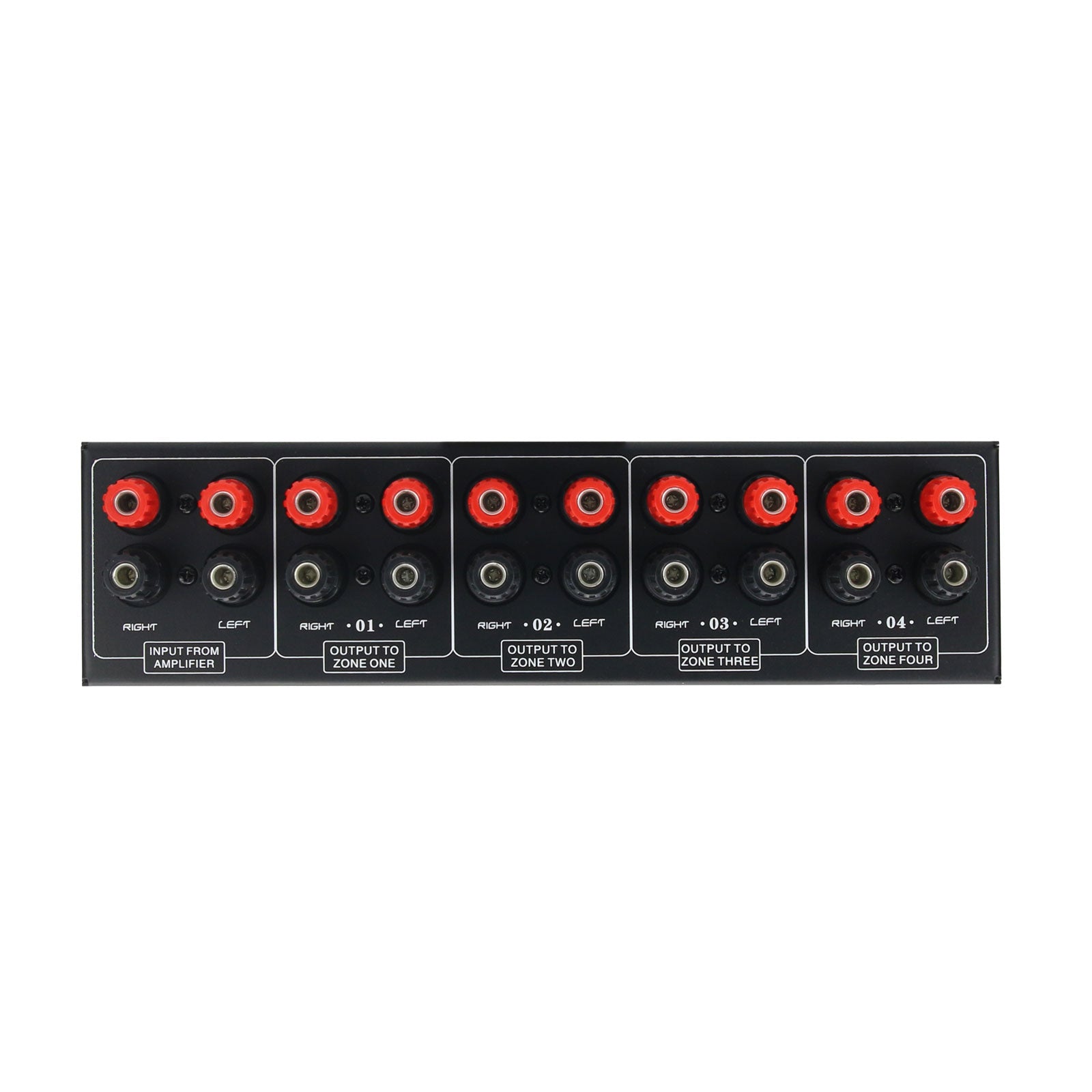 Are you stuck with the problem that a set of power amplifier signals need to be assigned to several speakers? Now this distribution panel can solve the problem of allocating one set of stereo inputs to four sets of speakers at the same time.