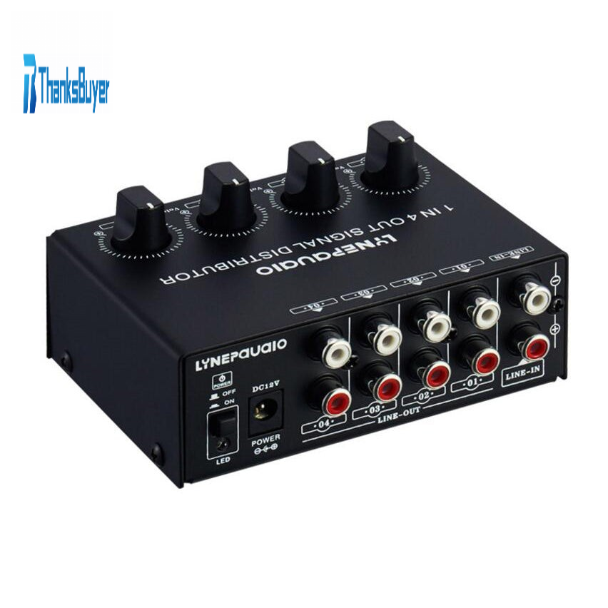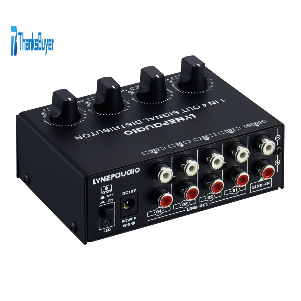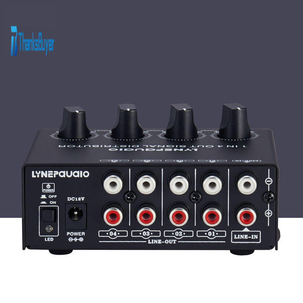 1 In 4 Out Stereo Signal Amplifier Distributor Independent Output Volume Adjustment Lossless