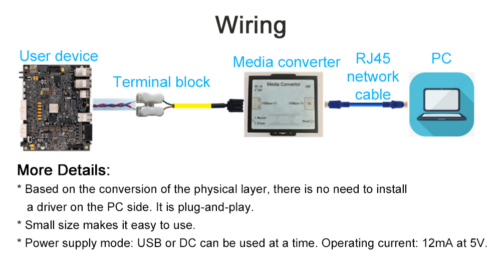 100BASE-T1 Media Converter 100Mbps Automotive Ethernet Converter w/ 49.2ft Communication Distance