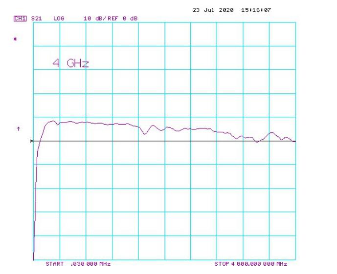 (1) The amplifier has very good flatness when the frequency is less than 500MHz, carefully adjusted to less than 1dB, the lower the frequency, the greater the gain and the higher the consistency.