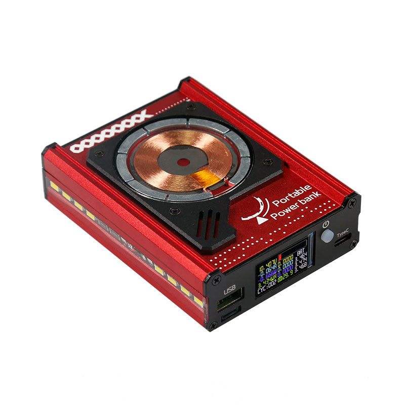- 1.14" IPS color screen can display various parameters, including electric quantity, wireless charging power, real-time power of each interface on the front panel, battery temperature, chip temperature, total voltage, current, and voltage of each battery.