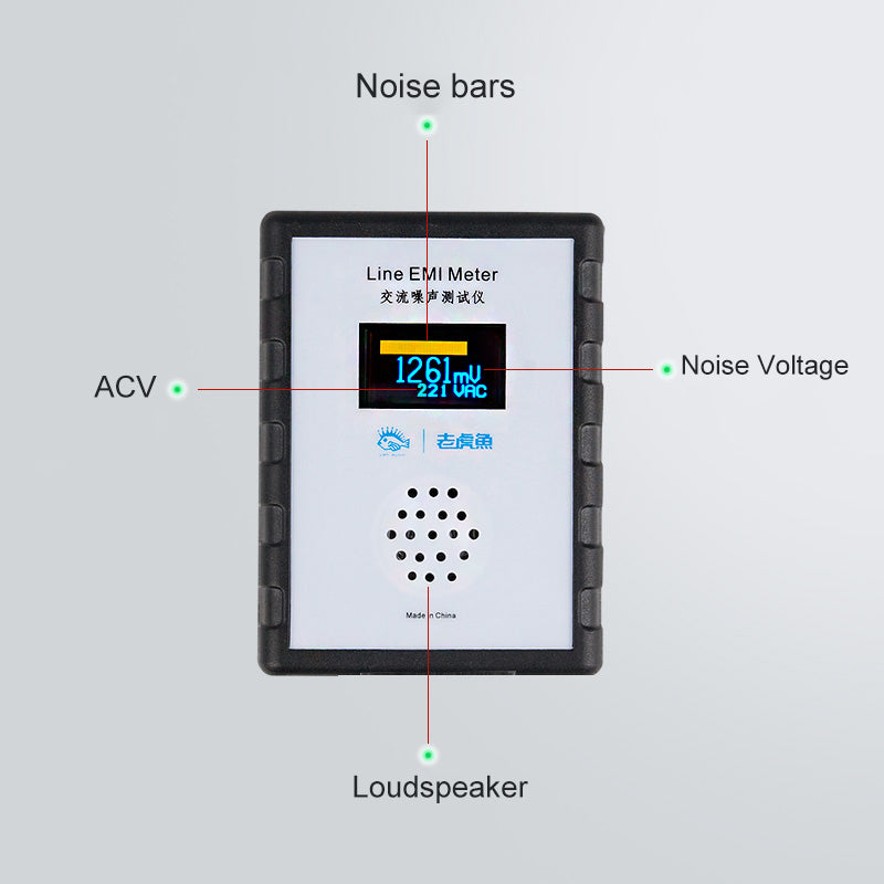 The main function of this AC mains noise tester is to display the current voltage and noise voltage of the mains through the panel's OLED dot matrix screen. In this way, everyone can see the current state of the mains power very intuitively, and have an accurate judgment on the quality of the power supply.