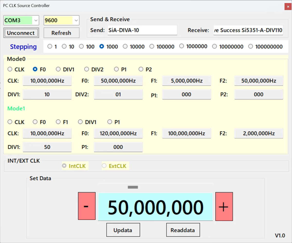 As shown in the figure above, F0 = 120 MHz and the division factor DIV1 = 10. F0 is an independent frequency. F2=F1/DIV1=1.01MHz.
