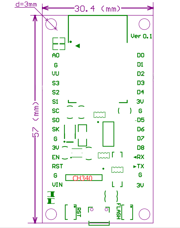 - Flash chip 25Q32 4M (32mbit) & serial chip CH340