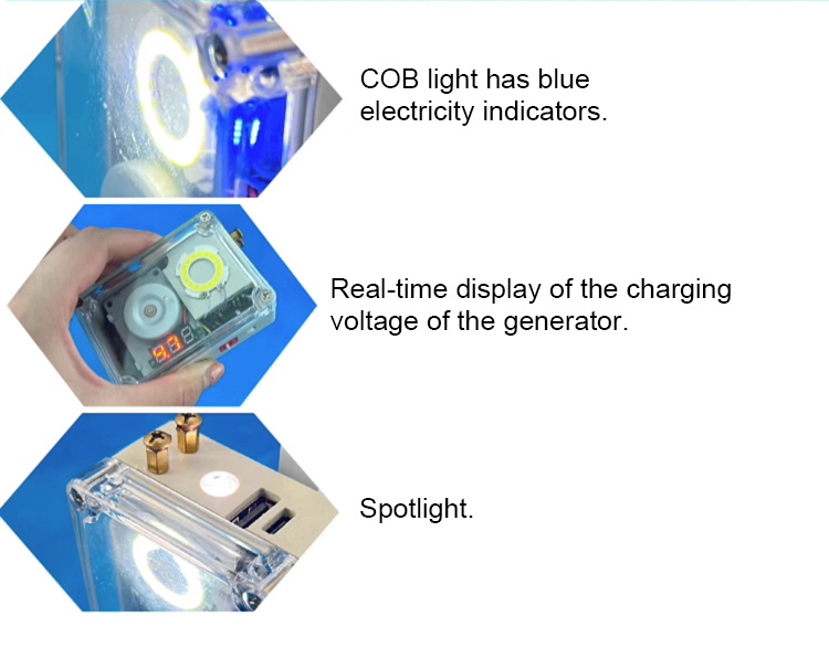 - Round COB light panel provides lighting and is suitable for emergency, night roads and outdoor camping. Manually shake the generator for 2 minutes and it can provide illumination for 5-15 hours