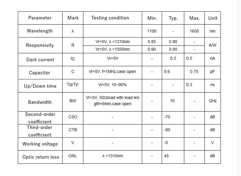 11000 - 1650nm 10G InGaAs Detector Avalanche Photodiode Fiber Pigtail Detector PD with FC/APC Connector