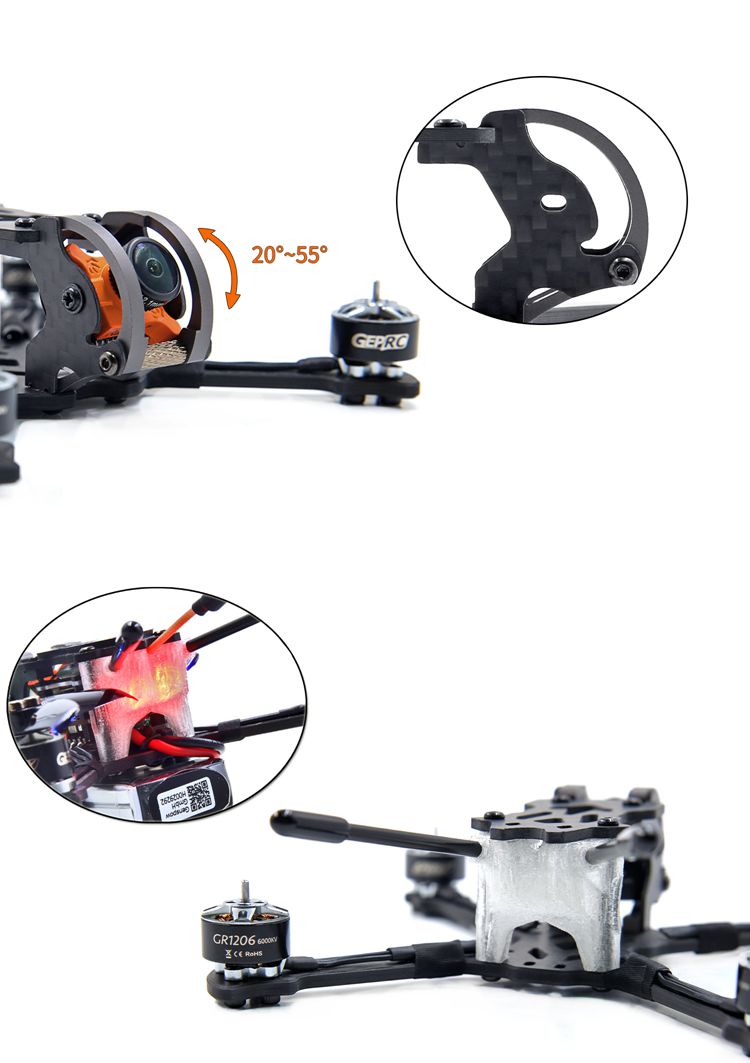 - Eye-catching FPV Drone Frame: Combined parts printed with 3D printing technology with pretty cool LED light, it addresses the problem of fixing your antenna and creates amazing flights.