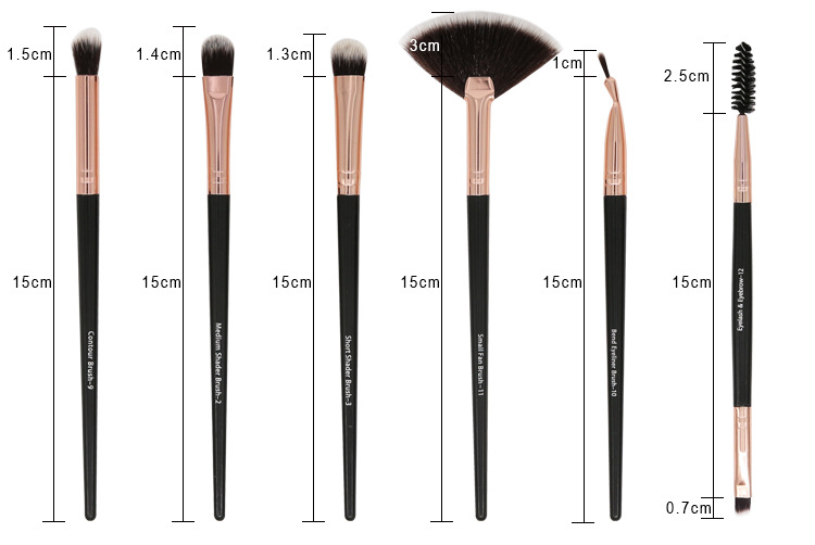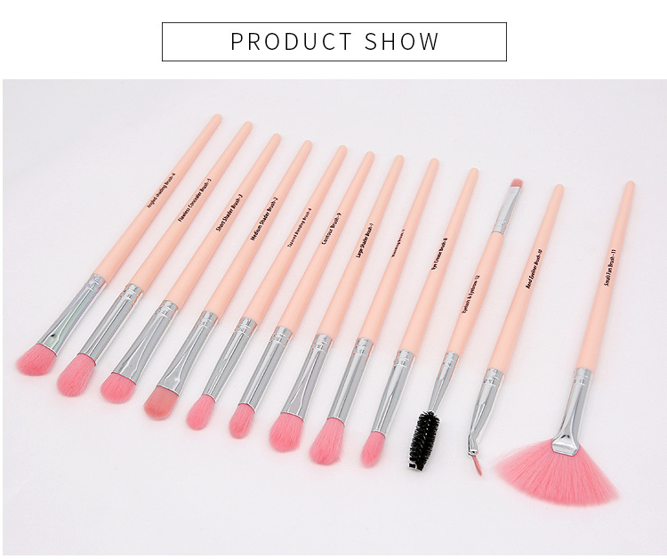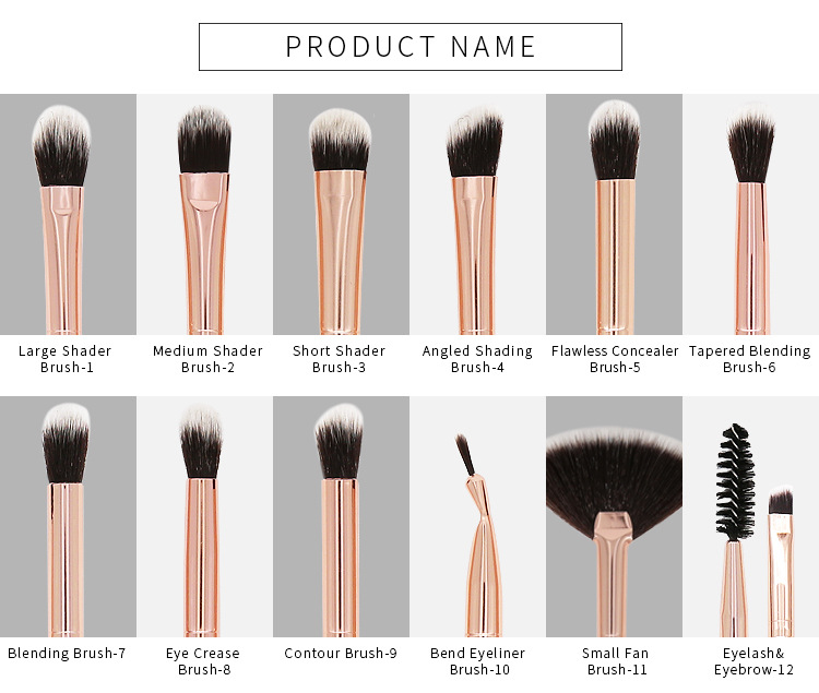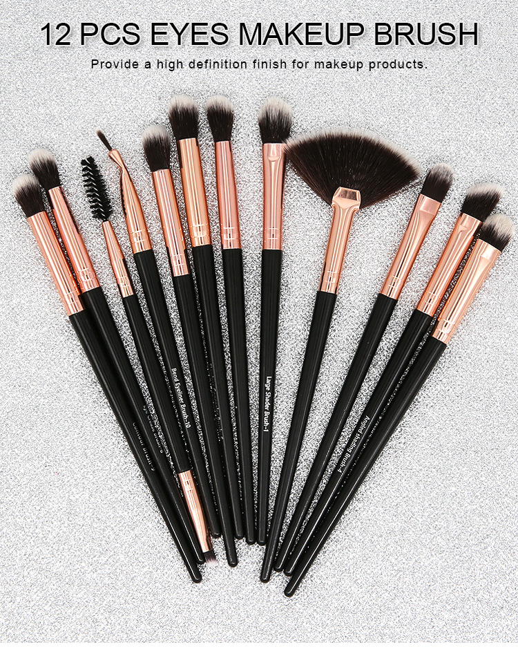 - 12 brushes in different shapes. Suitable for eyeshadow, concealer, eyeliner, eyebrow, eyelash, lip, trimming and other eye and face makeup.
