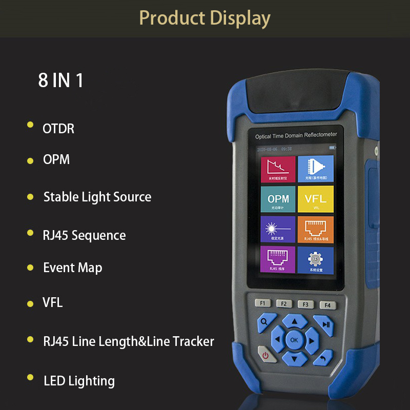 - Online Mini-Pro OTDR is apply to FTTx and access network construction and maintenance, to test fiber breakpoint, length, loss and input light automatic detection, automatic test by one key. The tester is compact with 3.5inch colorful LCD screen, new plastic shell design, shock-proof and drop-proof. The tester also combine 8 functions with highly integrated OTDR, Event maps, Stable Light source, Optical power meter, Visual fault locator, cable sequence proofreading, IL and lighting functions. It could quick detection of breakpoint, universal connector, 600 internal storage, TF card, USB data storage and built-in 4000mAh lithium battery, USB charging. It is a good choice for long term field work.