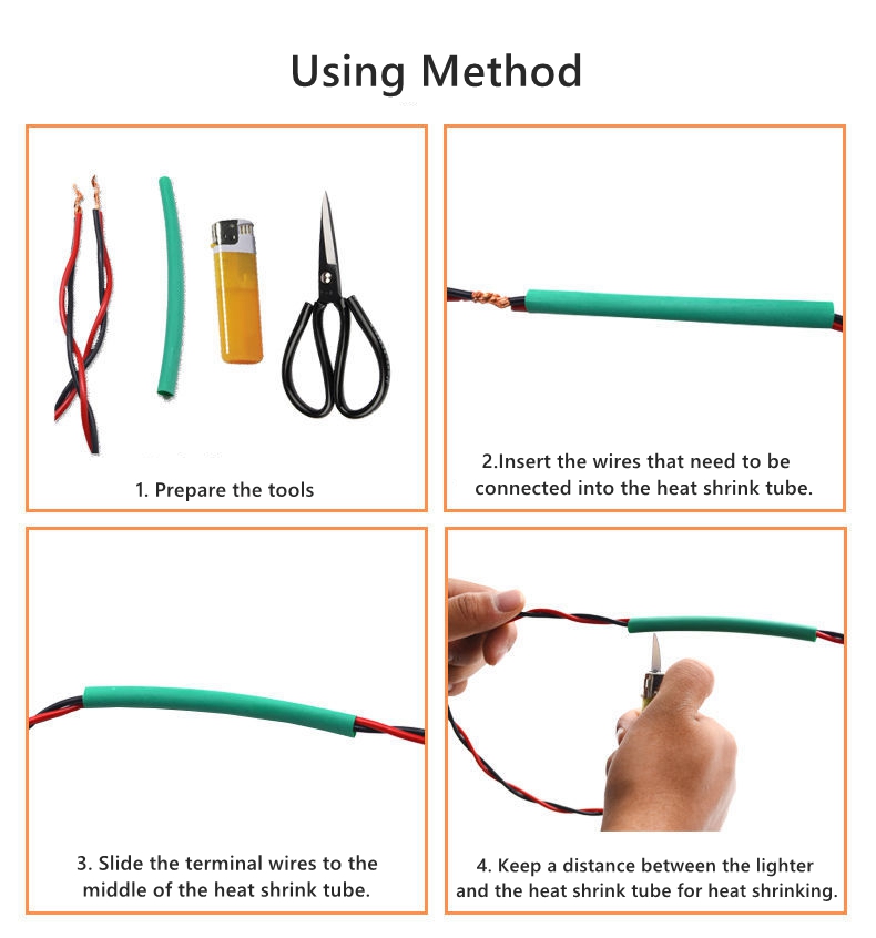 - Keep a distance between the lighter and the heat shrink tube for heat shrinking.
