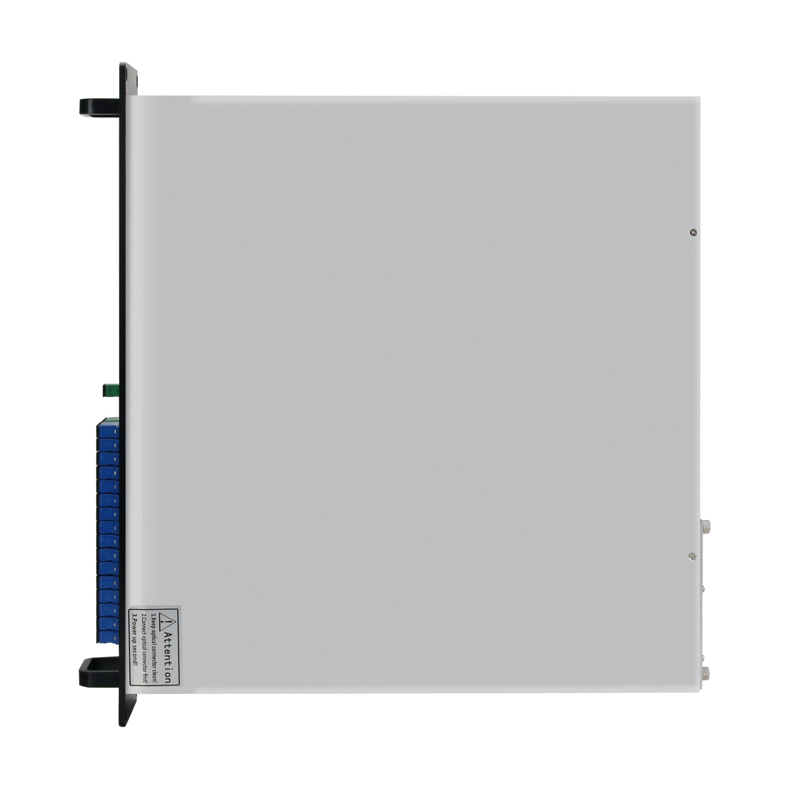 2. The correct order of plugging and unplugging the optical port is: Plug: first insert the optical jumper of the output port and then insert the optical jumper of the port; Unplug: first unplug the optical jumper of the input port, and then unplug the optical jumper of the output port.