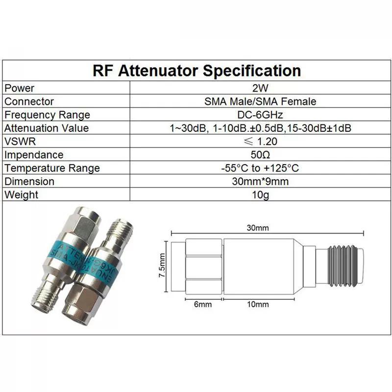 15DB 2W DC0-6GHz 50ohm Copper-plated Ternary Alloy RF Attenuator with SMA Male to Female Connector