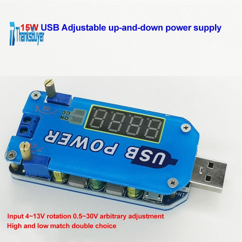 - Used as a USB input adjustable desktop power supply. You can adjust output voltage at will. Limiting current 0-2A (wide input 4-13V, wide output 0.5-30V arbitrary adjustment. With short-circuit protection).