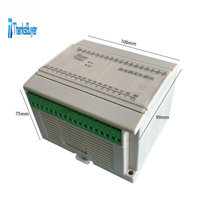 The module can measure 16-way K graduation (or J, T, E, R, S, B, etc.) thermocouple signals, modules can be applied to temperature measurement system. Its output is 485 bus mode, communication protocol for MODBUS-RTU, which is convenient for PLC and configuration software applications.