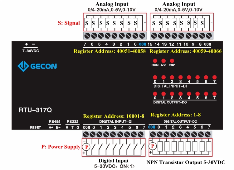 16AI + 8DI + 8NPN Data Acquisition Module For MODBUS RTU Industrial Controller RTU-317Q RS485+RS232