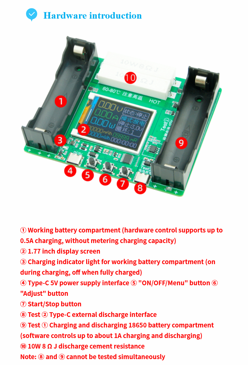 - Discharge current: Two-way resistors, up to about 1A current, non-adjustable, and independent modification not supported