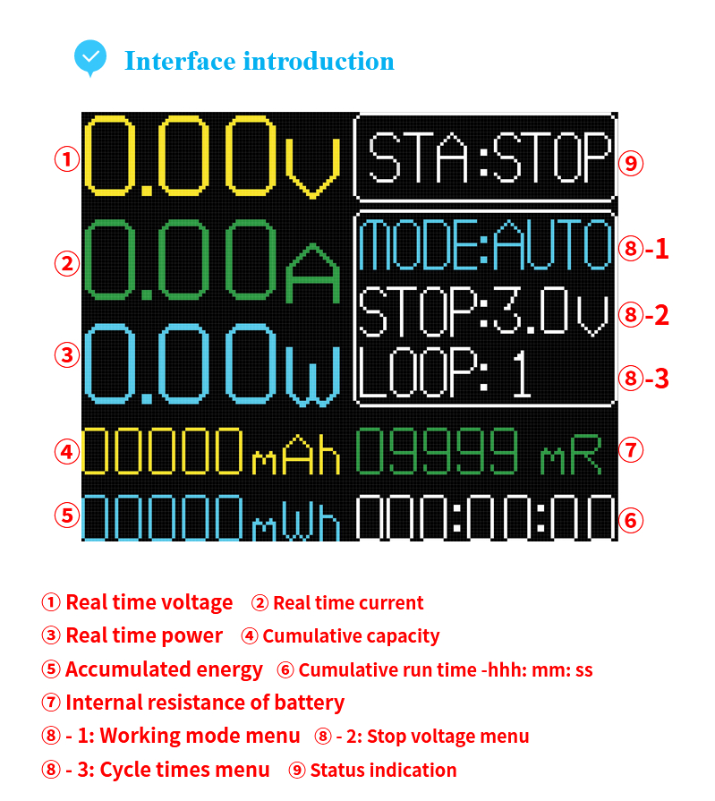 - Cyclic charging and discharging: supported, adjustable for 1-9 cycles