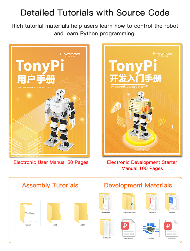 - Detailed materials and source code for robot are provided together with using tutorials.