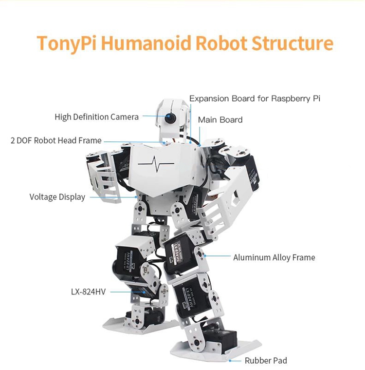 18DOF Visual Humanoid Robot Programmable Robot TonyPi Finished w/ Main Board for Raspberry Pi 4B/4G