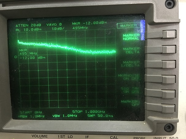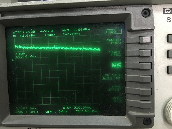 Output signal covers 1MHz ~ 3.5GHz. Due to the limitation of amplifier choke, in order to take care of the high-end amplitude of the frequency, the amplitude below 1MHz is extremely low (but if you need to reach DC, please contact us, we can easily achieve it by replacing the inductor). Relatively speaking, the frequency response in the full frequency band has a certain slope, but it is still strong in any 500MHz bandwidth.