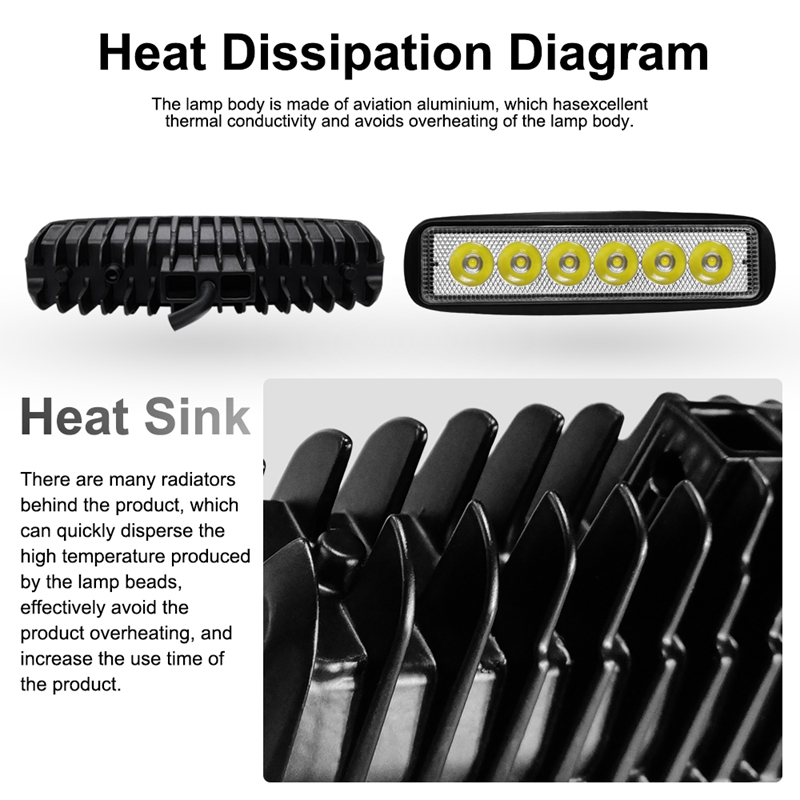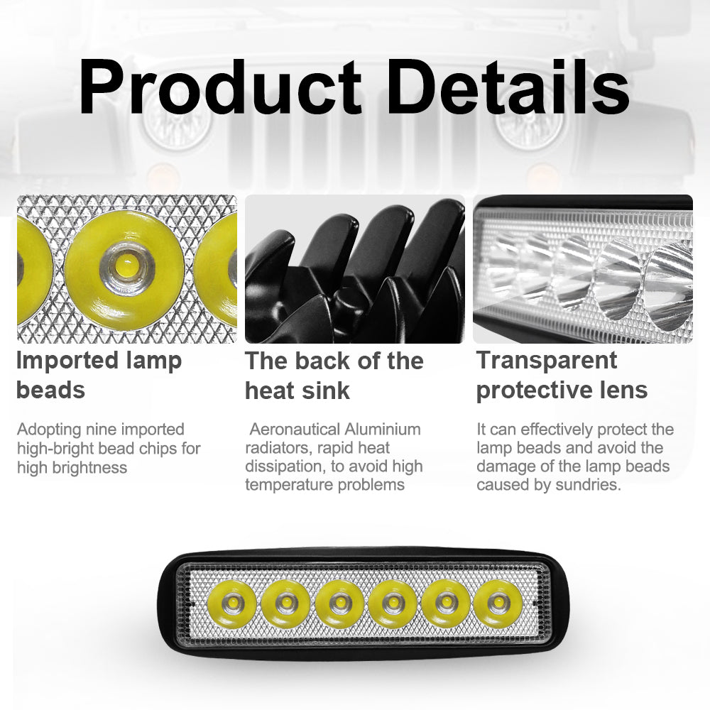 1pc 18W 1800LM Off-Road Spotlight LED Work Light for Truck SUV Off-road Vehicles Boats Lighting