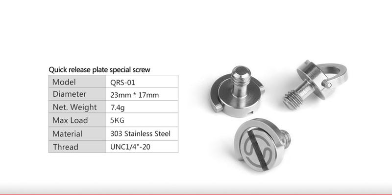 1pc QRS-01 Quick Release Plate Screw Stainless Steel Camera Screw 1/4"-20 For Tripod QR Plates