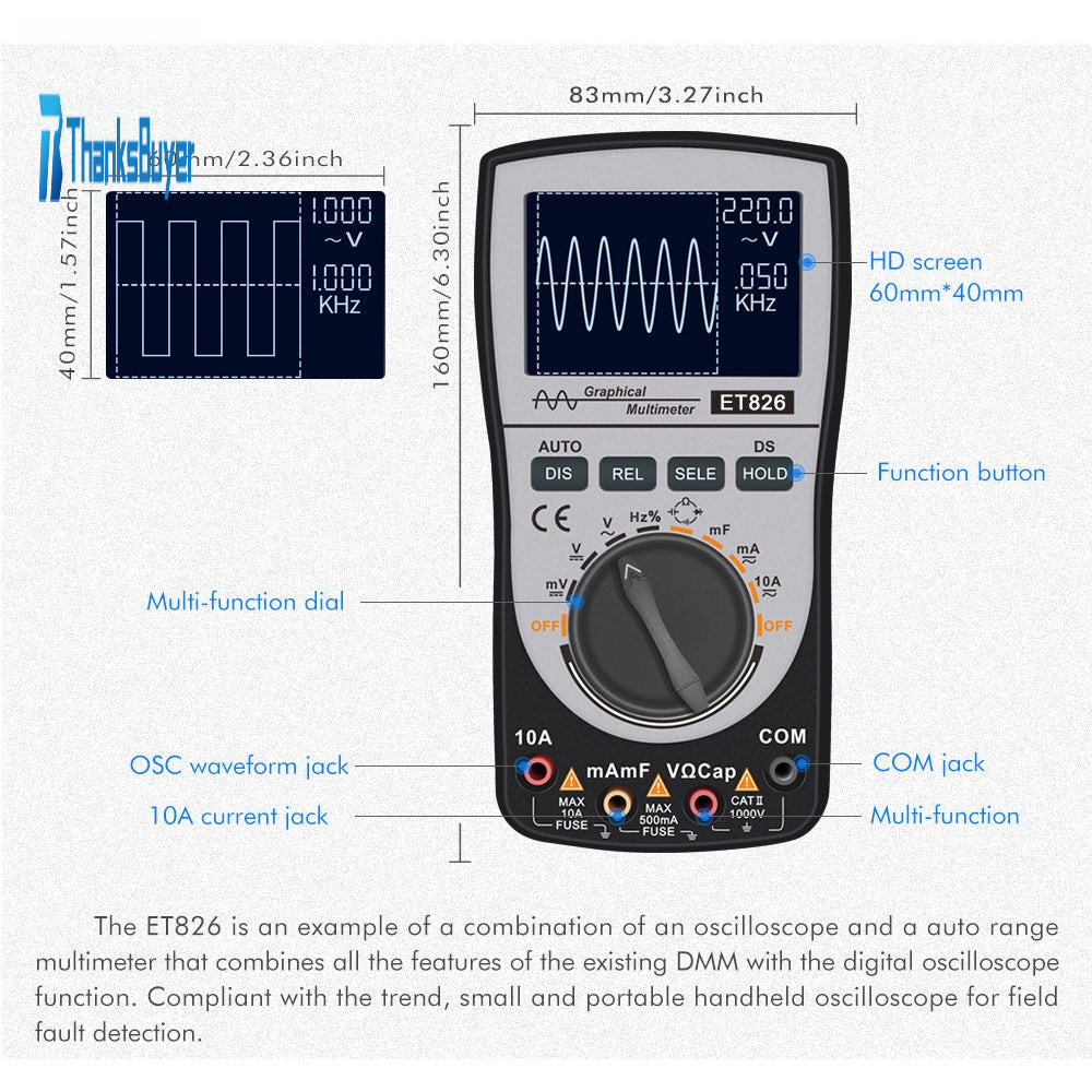 2-In-1 Graphical Multimeter Digital Oscilloscope with Color Screen Fast and Accurate Measurement