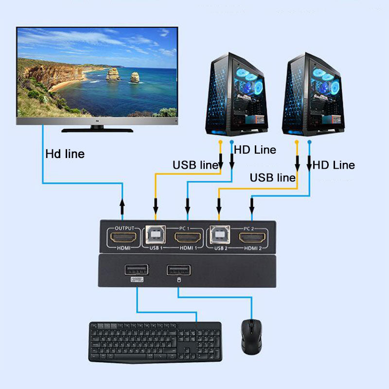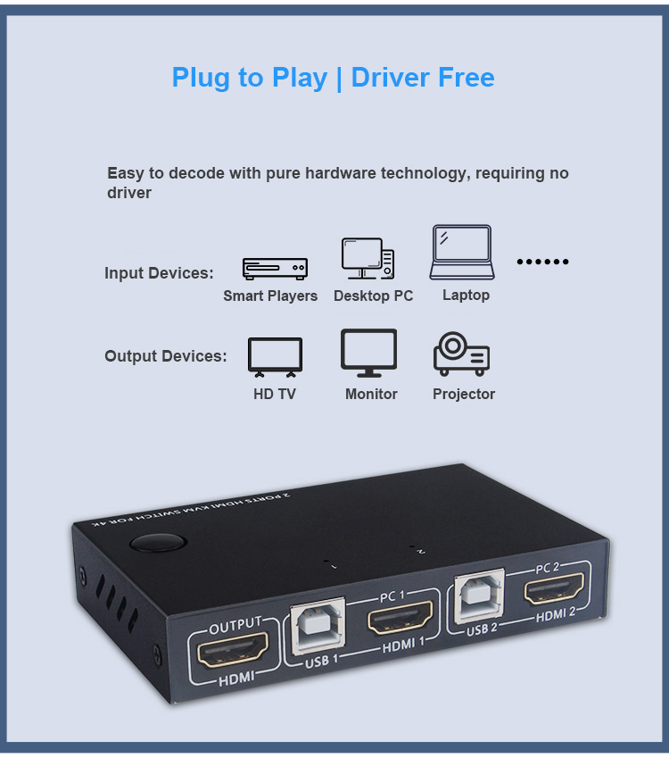 2 Port HDMI KVM Switch 2 IN 1 OUT 4K*2K 30Hz For Dual PC Hosts AM-KM201 Black