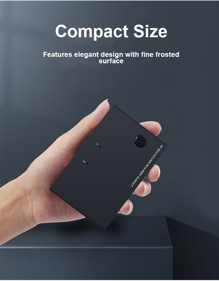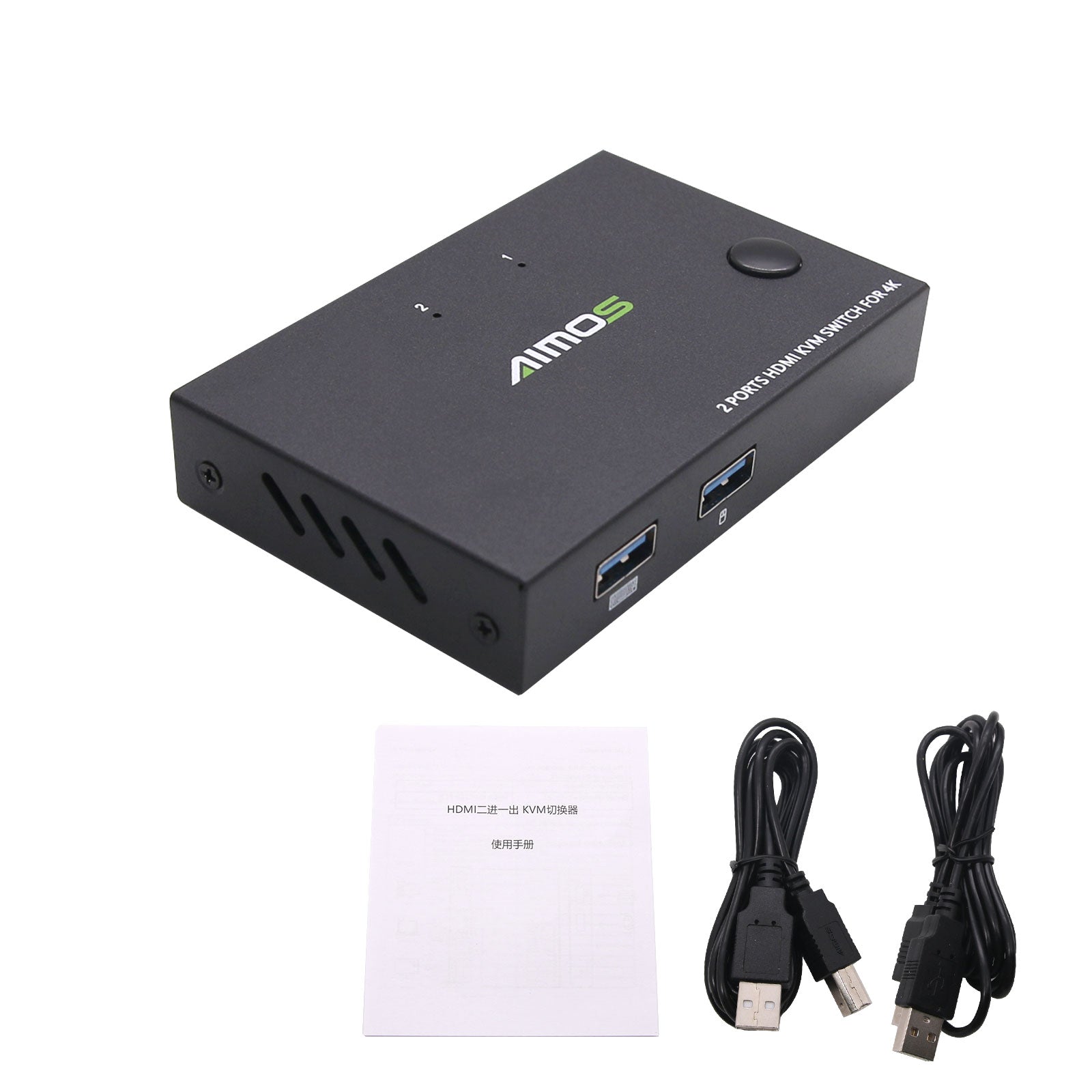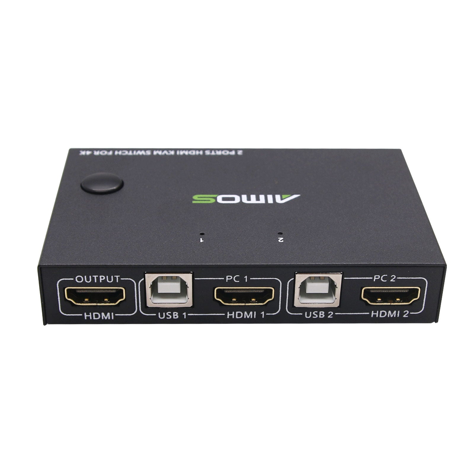 2 Port HDMI KVM Switch 2 IN 1 OUT For 4K*2K@30Hz AM-KM201 Version 2.0 Dark Gray