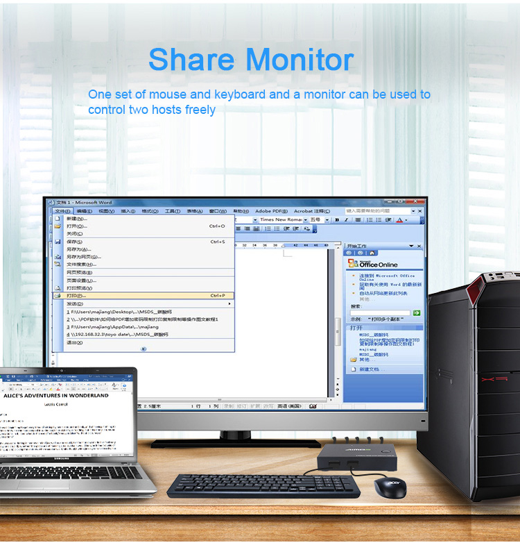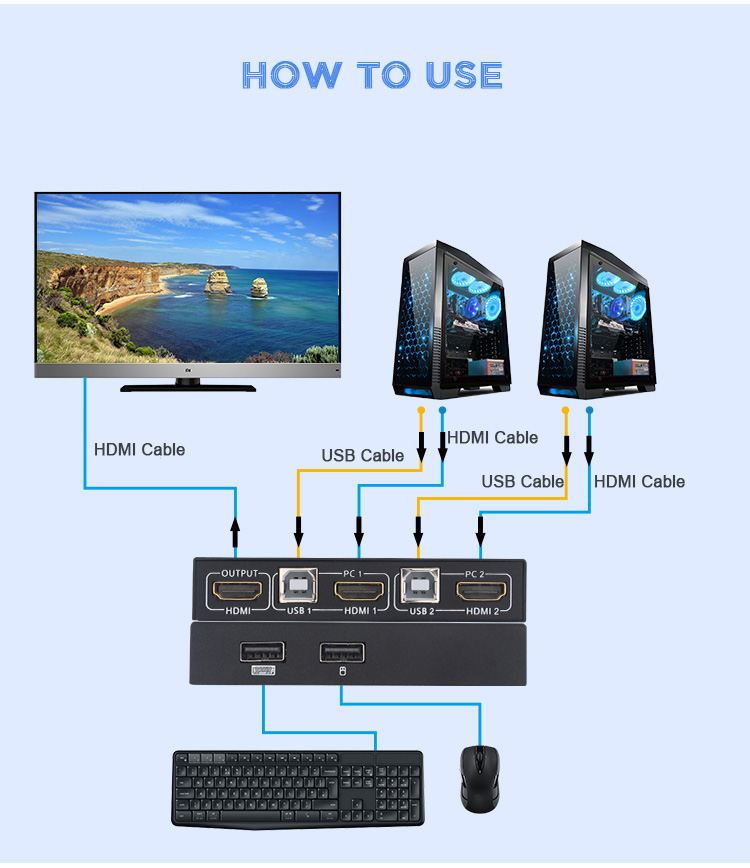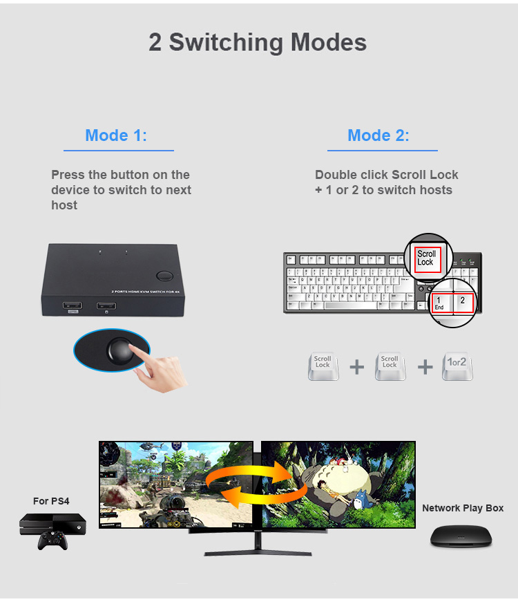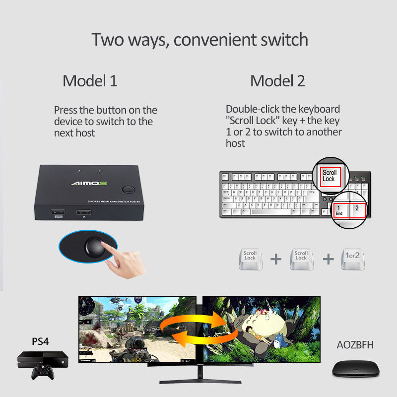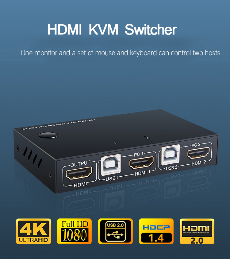 2 Port HDMI KVM Switch 2 IN 1 OUT For 4K*2K@30Hz AM-KM201 Version 2.0 Dark Gray