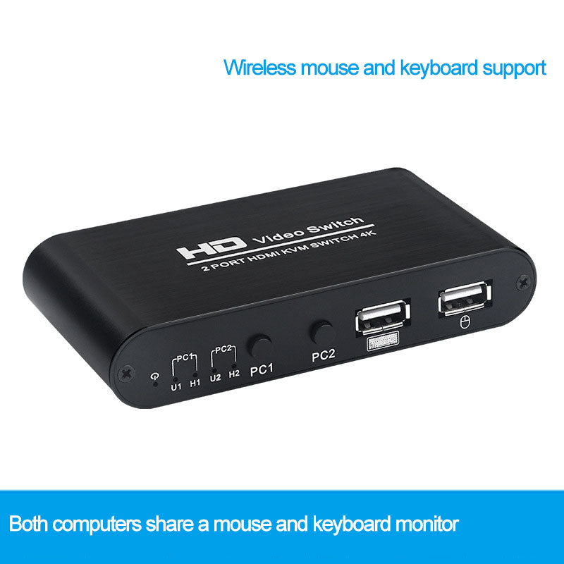 2 Port HDMI KVM Switch 4K Support Wireless Mouse Keyboard For Dual PC Hosts 201YT