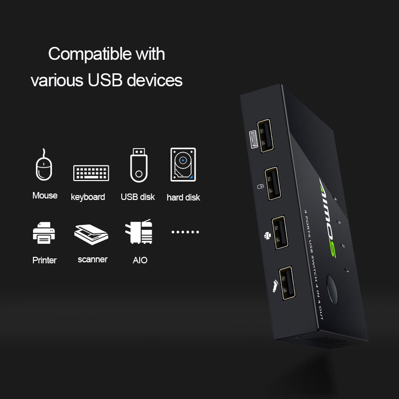 - Uplink Ports: Support 2 hosts to share 4pcs USB devices