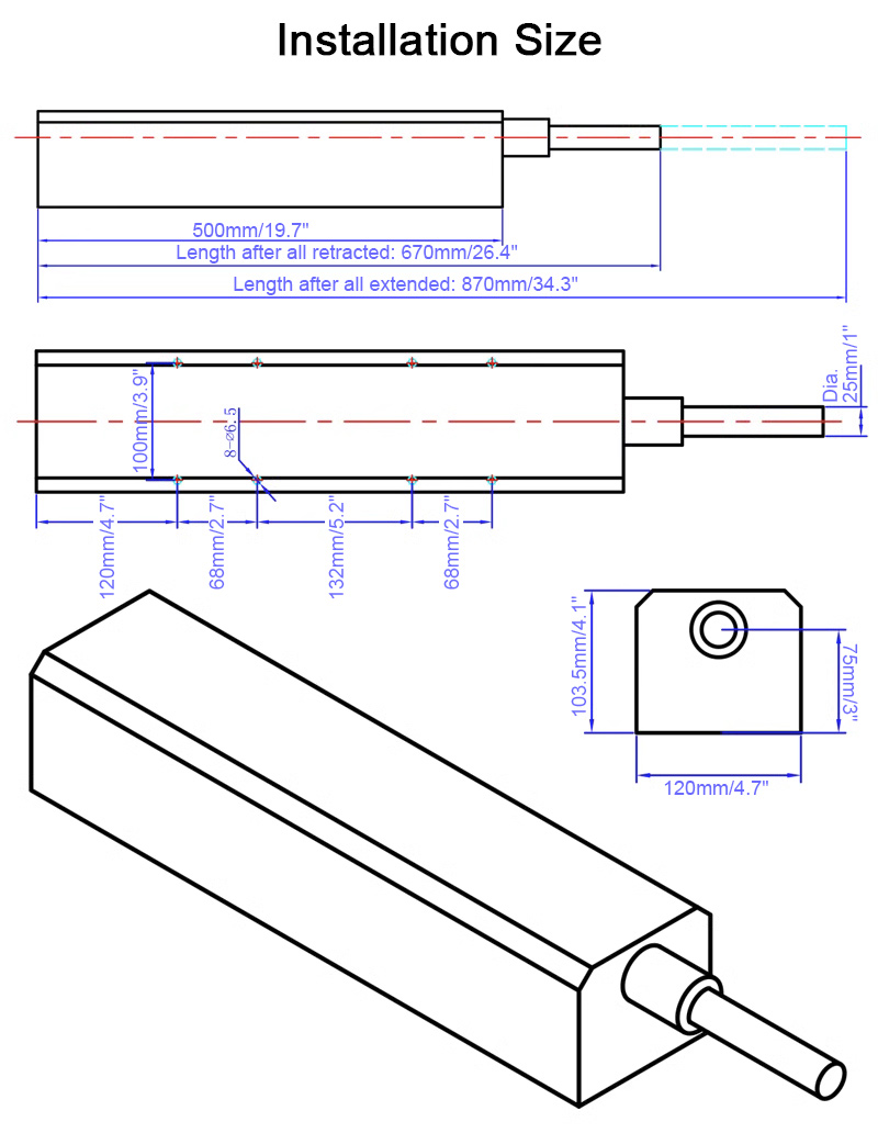 - Dimensions: 120 x 100 x 500mm/4.7 x 3.9 x 19.7" (WxTxH)