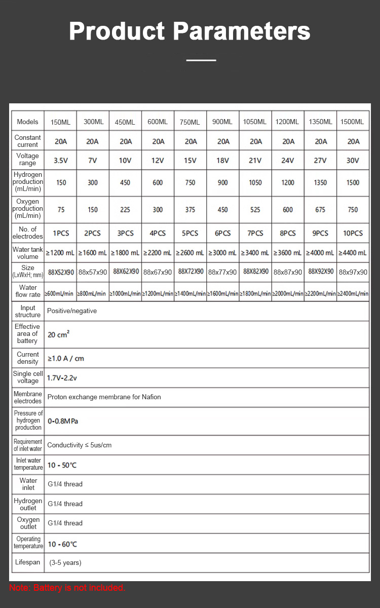 - Hydrogen and oxygen separation: Safe to use thanks to stable performance. The lifespan is 3-5 years