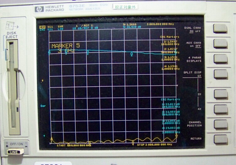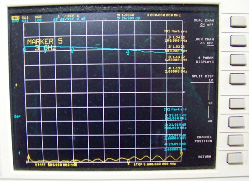 - Gain 32.9dB at 500MHZ, standing wave ratio: 1.02 at 500MHZ
