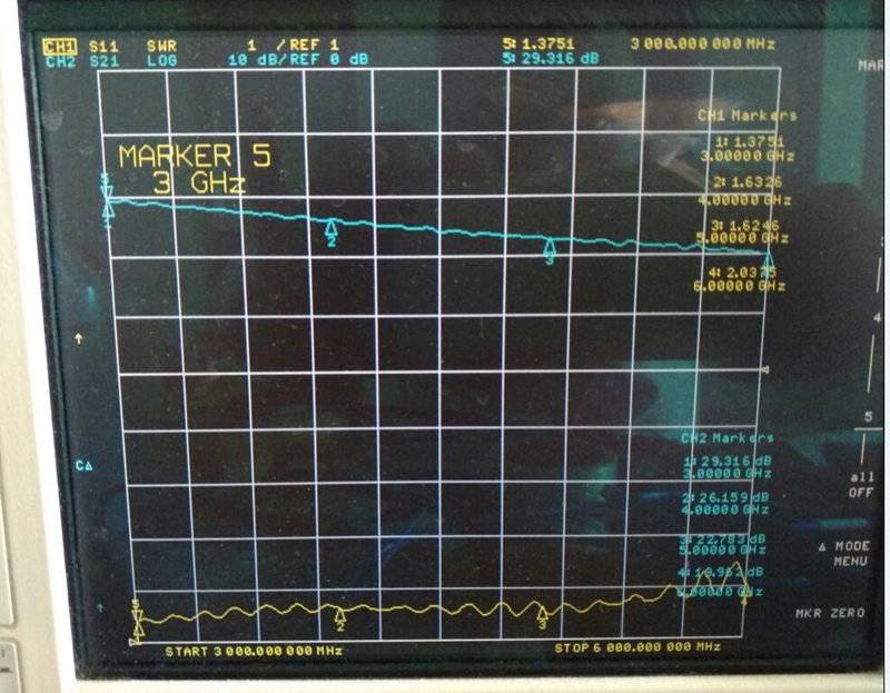 - Gain 23dB at 5000MHZ, standing wave ratio: 1.6 at 5000MHZ
