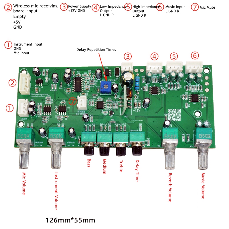 2399 Karaoke Delay Reverb Preamplifier Board Microphone Preamp Tuning Motherboard Support Dynamic mic Input