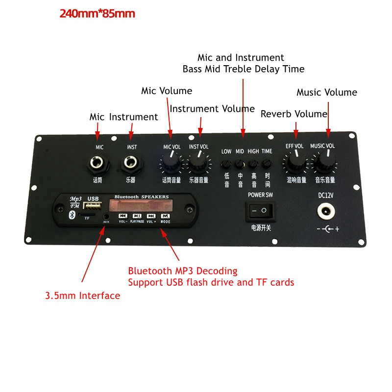 2399 Karaoke Delay Reverb Preamplifier Board Microphone Preamp Tuning Motherboard with Panel Support for MP3 Bluetooth Function