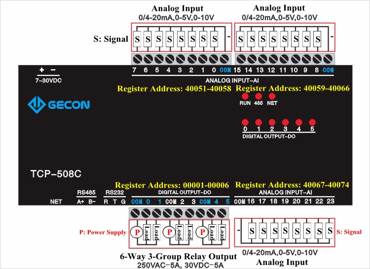 24AI + 6DO Data Acquisition Industrial Ethernet IO Module TCP-508C [Ethernet Communications]