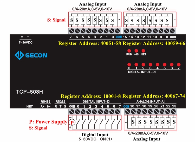 24AI + 8DI Industrial Controller Ethernet IO Module PLC Extension TCP-508H Ethernet Communications